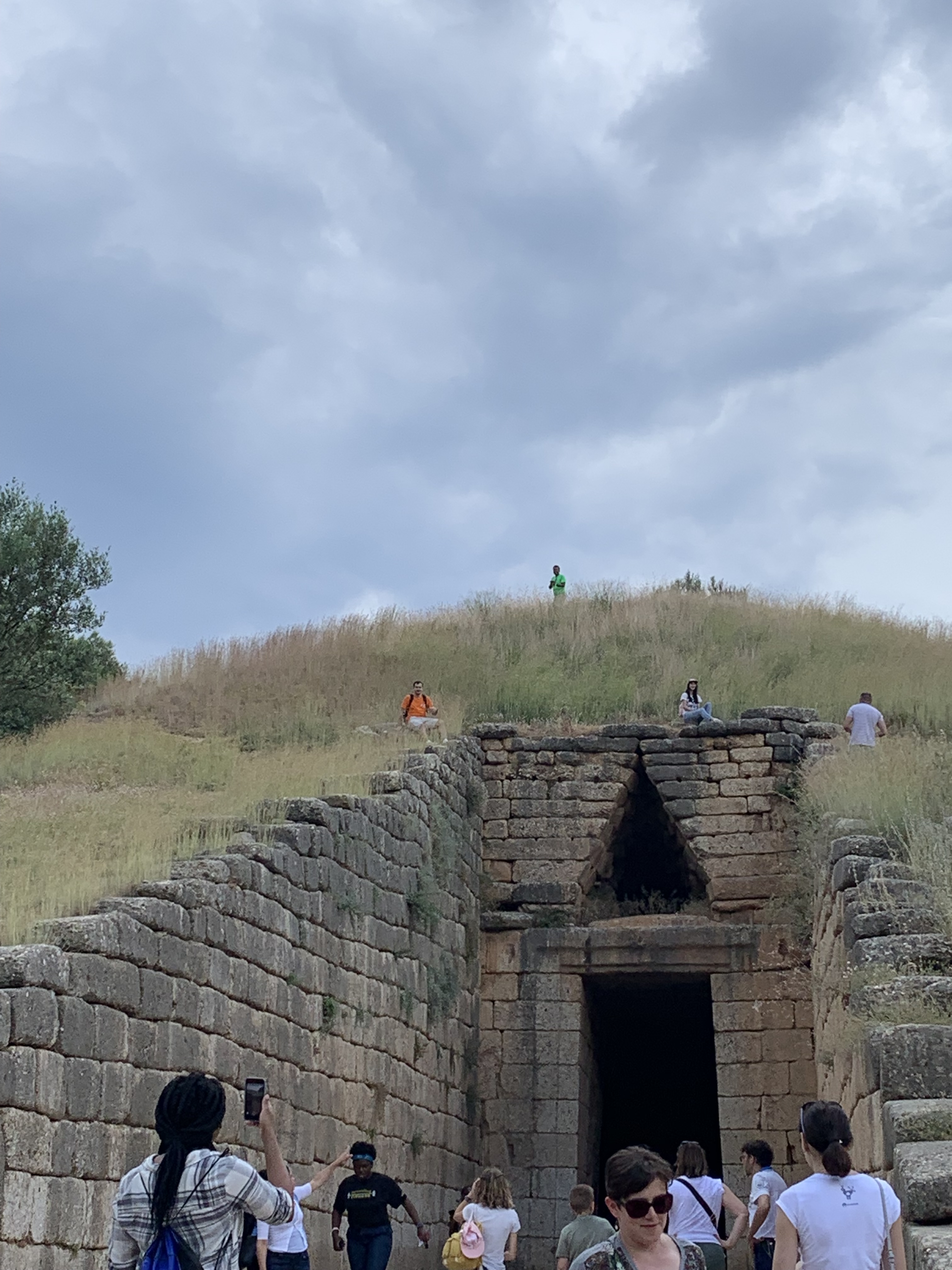 Another day that I spent sleeping and During the tour at the winery, we finally heard from an expert about the causes of the economic crisis from the woman who gave us the tour at the winery. Since she is an economist, she gave us a presentation on the spot about when it started, and she was the first person to blame Greece for it. She told us the government was not prepared to join the European Union, but they still did it anyways without thinking about inflation and the economic impacts. We hiked the archaeological site of Mycenae while listened to the expert archaeologist who was with us throughout these days. Seeing these archaeological sites in person made me actually think about the myths behind how they were actually built. I kind of started believing that Tyrins employed Cyclopes to build the walls of Mycenae with giant stones that no human could move. But in fact I know that a lot of labor went into building these structures. Visiting these sites really made me admire Greek architecture.